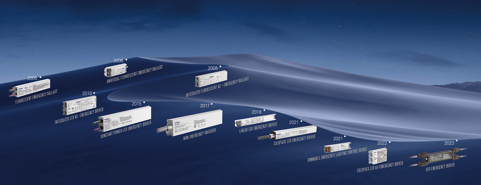 Phenix Lighting provides full ranges of UL924 and EN61347 certified emergency LED drivers and lighting inverters with pure sinusoidal AC output